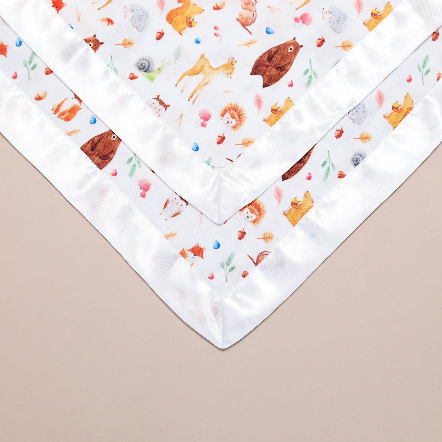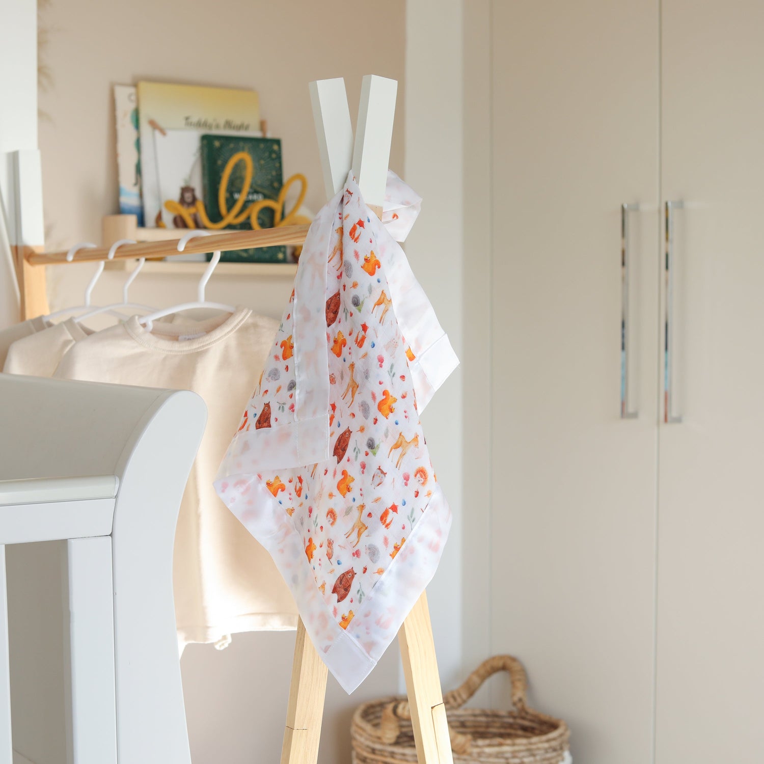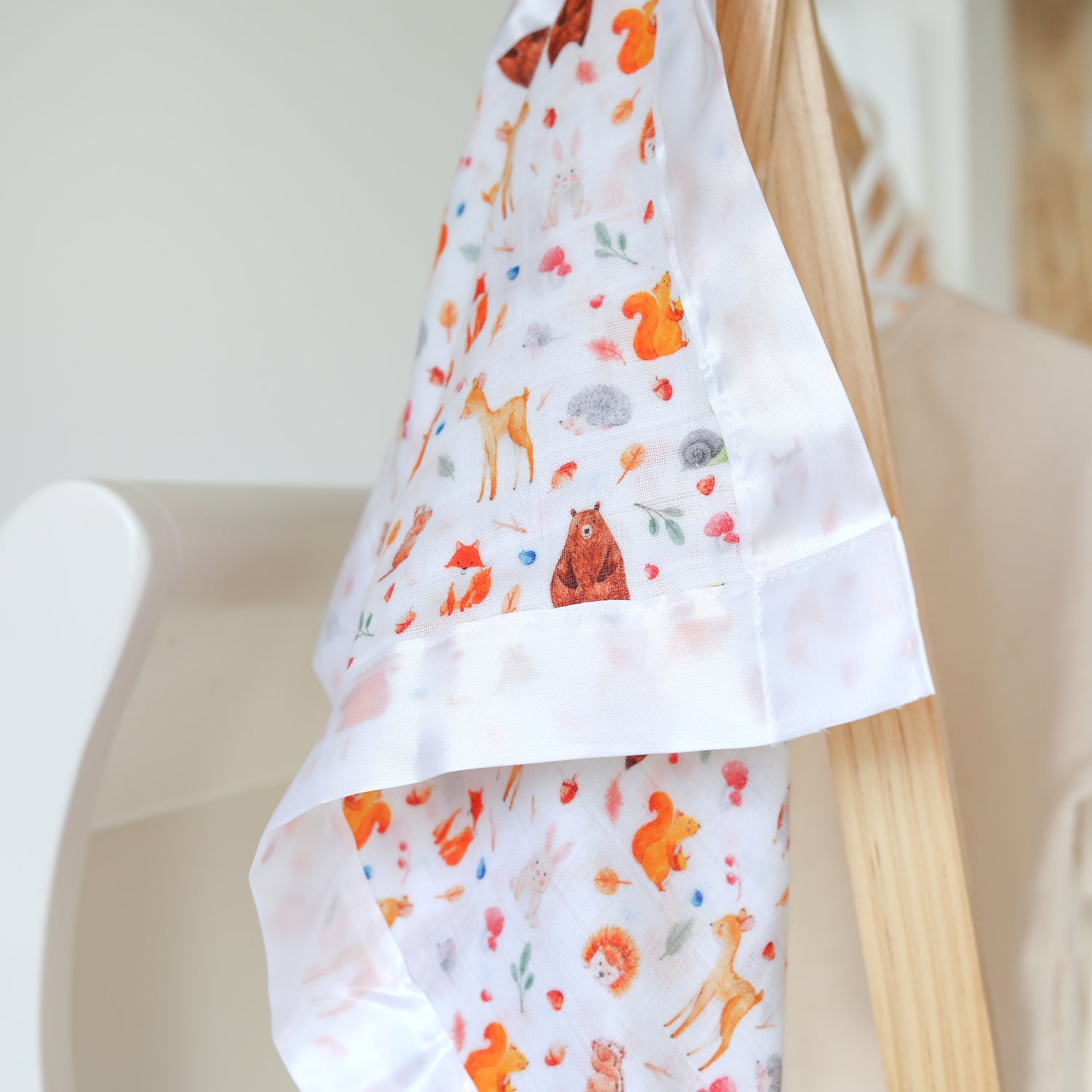 Soothe your little one with the original satin-edged muslin comforters. Now in our much-loved Woodland Animal print.